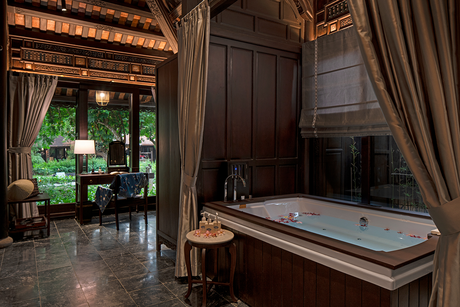 Trải nghiệm cuộc sống vương giả trong những ngôi nhà rường cổ kính, nơi mỗi chi tiết chạm trổ đều kể về một thời vàng son của kinh kỳ. Hãy để Ancient Hue Garden đưa bạn trở về làm những quý tộc thực thụ trong không gian nhà vườn tĩnh mịch và thanh cao.