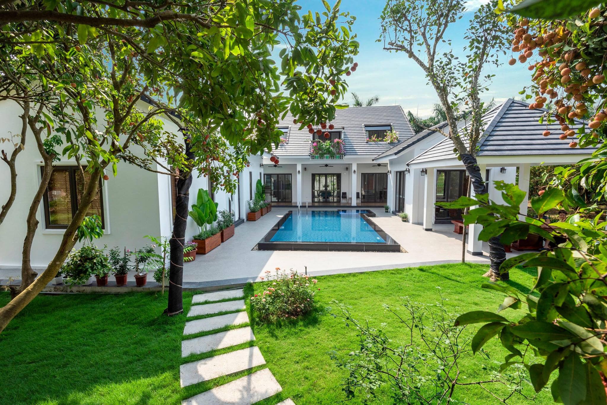 Kết cấu: 05 phòng ngủ lớn, phòng sinh hoạt chung rộng rãi, hồ bơi ngoài trời riêng biệt.